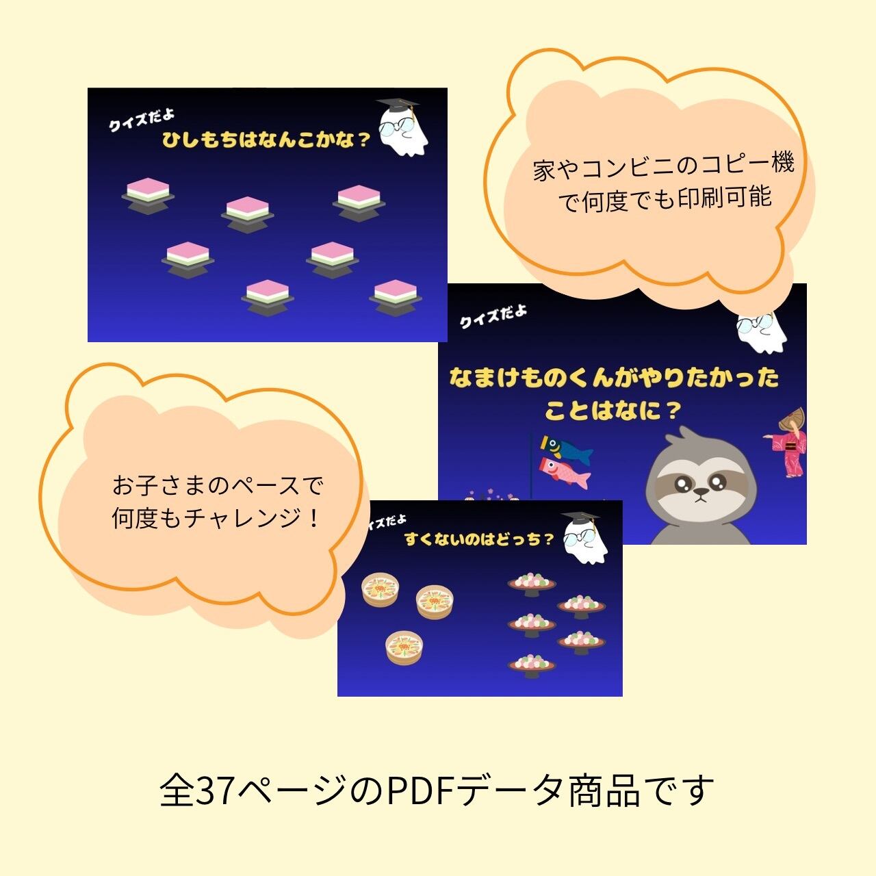 PDF絵本【ひな祭りをしてみたい】が新登場しました!この絵本は、おばけちゃんとなまけものくんの物語を読んでクイズに答えながら楽しく学ぶことを目的に作られました。そしてお子さまの想像力を刺激し、ひな祭りの雰囲気を楽しむことができます。